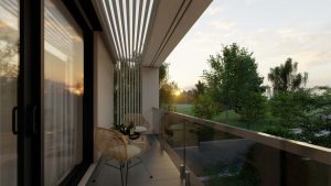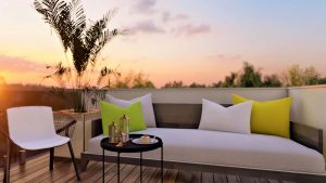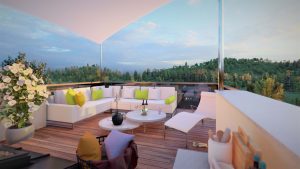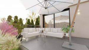 „A” lakás: nappali + 4 szoba. Minden szobához önálló terasz is tartozik.